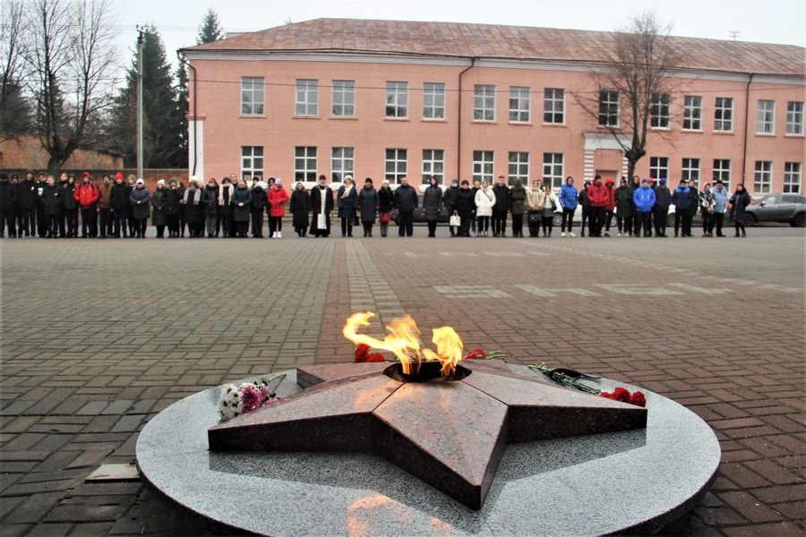 Сегодня у Вечного Огня в городе Рыльске состоялся митинг, посвященный Дню Неизвестного Солдата, на котором собрались жители города, молодежь, представители Администрации города Рыльска и Рыльского района, волонтерских организаций, районного Совета ветеранов, духовенство.