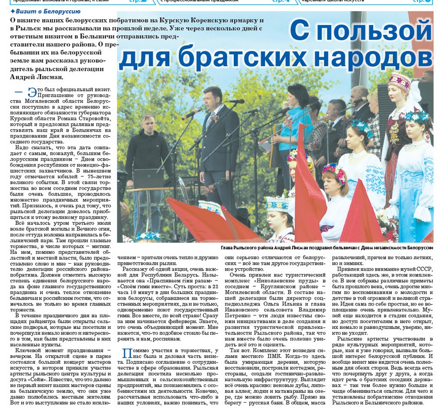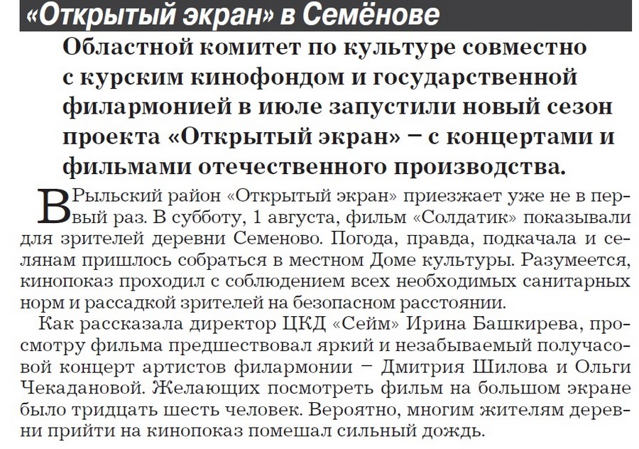 Мы в СМИ - МБУК Рыльский центр культуры и досуга "Сейм"